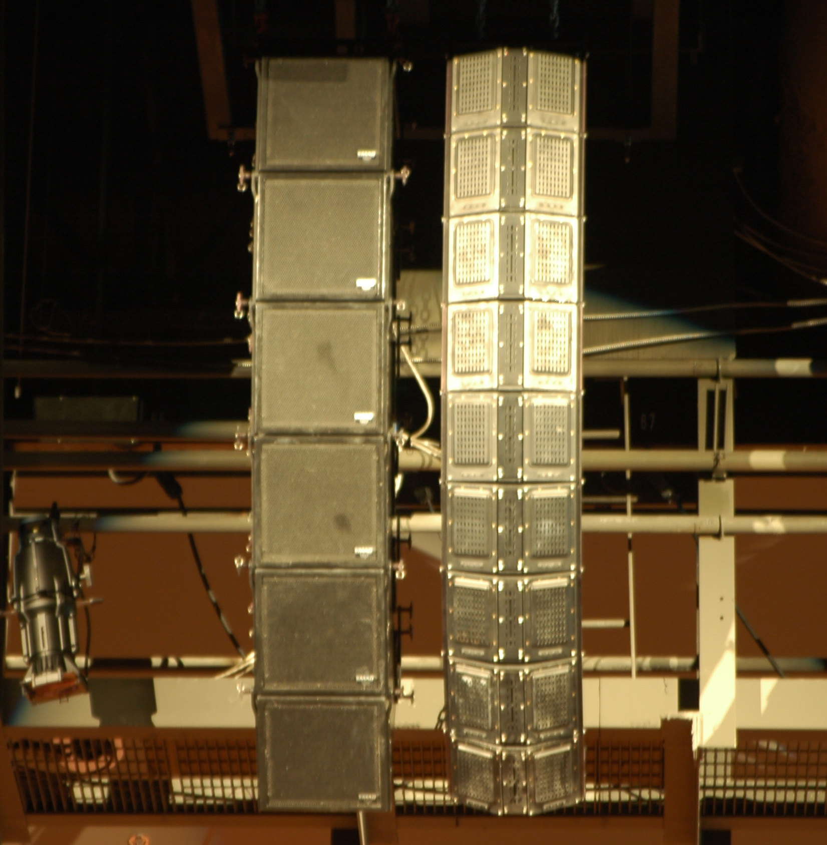 - an extensive catwalk layout accessing stage lighting, video projection, speaker arrays, and structural rigging points